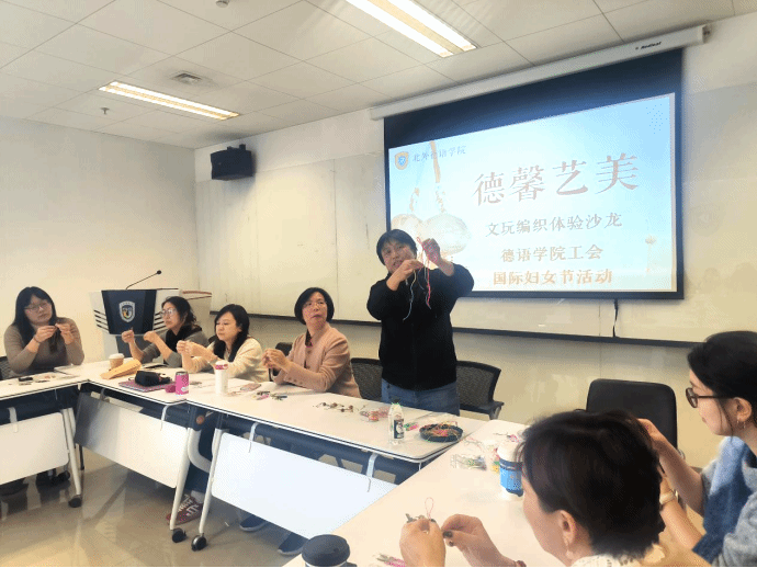 为庆祝第115个“三八”国际劳动妇女节,传承中华文化,陶冶师生情操,丰富美育内涵,sunbet申搏工会组织“德馨艺美”文玩编织沙龙,邀请宣传部王欣老师教授师生学习中国传统文玩编织技艺,近30名师生参加了活动。