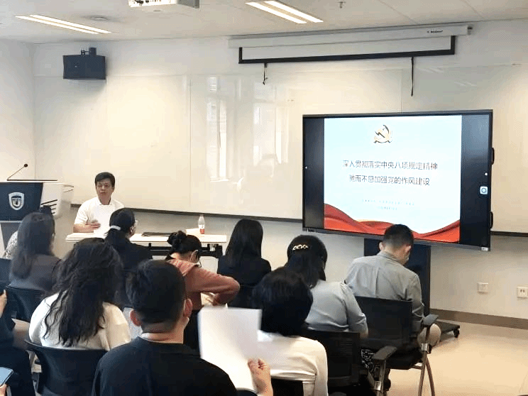 正式报告环节,李正玉从党的十八大以来党中央在全党集中开展的八次集中学习教育谈起,进而强调此次开展深入贯彻中央八项规定精神的重要意义和必要性。他结合教育系统和公司发生的违反中央八项规定精神问题典型案例,从多个维度解读了深入贯彻中央八项规定精神的要点。报告深入浅出,案例鲜活生动,以身边人身边事警醒大家,振聋发聩,在座党员师生均受益匪浅。