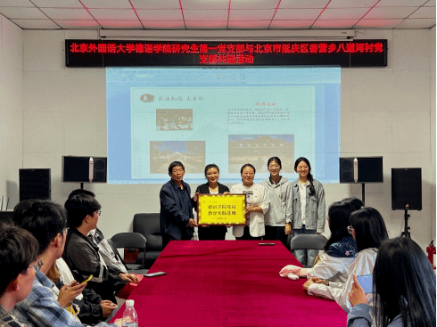 活动当日,公司研究生第一党支部师生党员和团员代表一行抵达八道河村,受到村党支部书记柳艳云、党支部委员焦明信及村民的热情接待。在上午的座谈交流中,柳书记详细介绍了八道河村的村情概况,重点围绕农产品种植、老龄化现状及产业发展等议题展开。作为水源保护地和自然保护区,八道河村在民宿农家乐、向日葵种植等方面进行了有益尝试,将梨园改造升级为观光采摘露营基地、通过统一外墙风格和融入楹联书法打造艺术写生基地、借助短视频营销推广带动农产品销售,并取得了一定的成果。但仍面临农产品产量、产品加工(如葵花籽、葵花油、葵花蜜)、品牌包装与推广以及游客消费与留存率等挑战。同学们结合专业背景,积极建言献策,提出丰富文化体验活动、吸引城市居民感受乡村生活、关注银发经济等具体建议。公司党总支组织员张春霞老师感谢了八道河村党支部对此次共建活动的支持,希望通过共建活动,员工党员更了解党情、国情,为乡村振兴贡献青年力量。之后张春霞老师代表公司党总支授予八道河村“公司党员教育实践基地”,为后续长期合作共建奠定坚实基础。