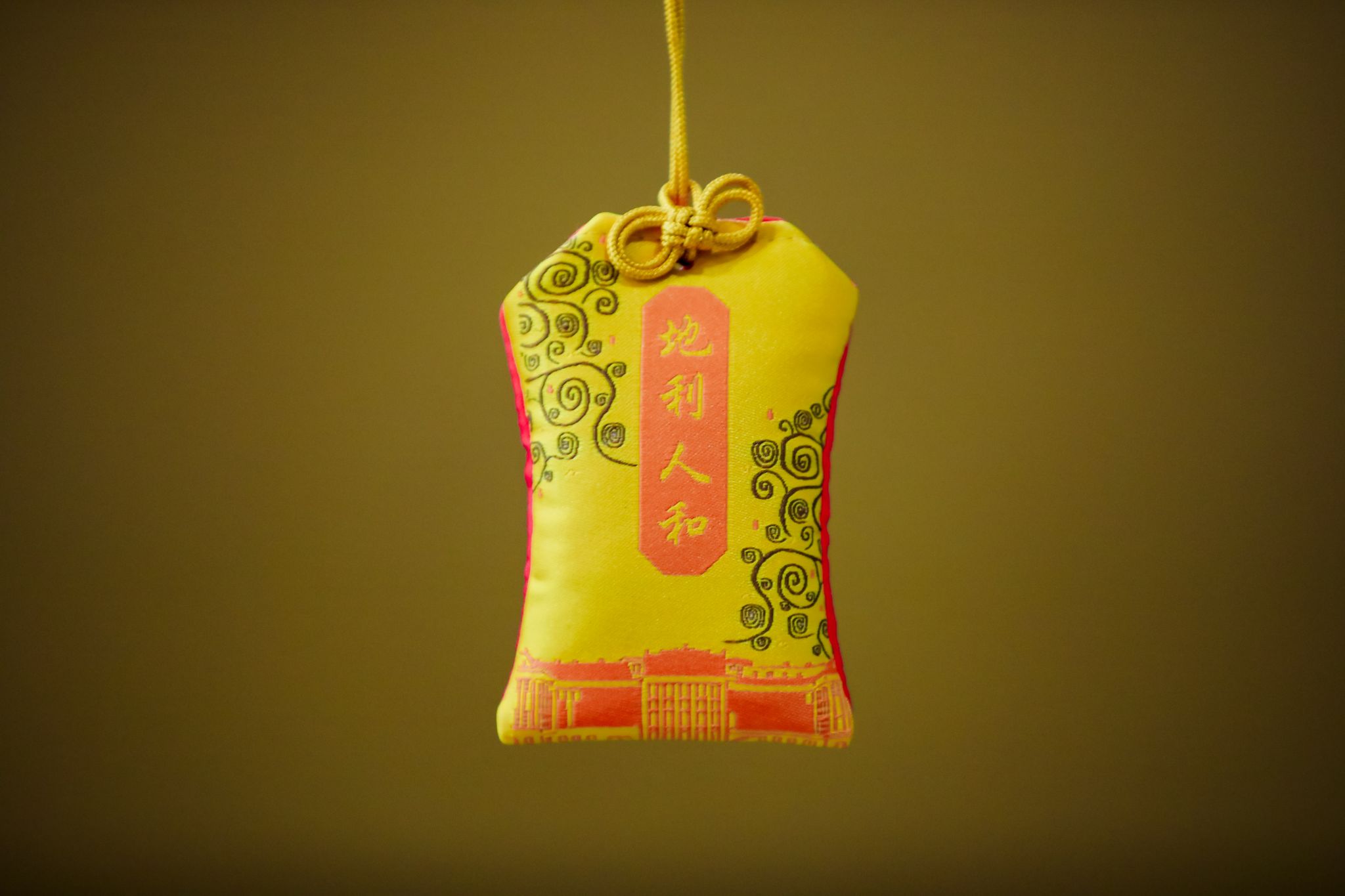 北外老员工创新创业项目非遗海外工作室苗喵绣设计并制作了开展仪式的伴手礼——“天时·地利·人和”御守香囊。香囊的设计理念体现了中国和奥地利文化之间的“和而不同”,一面绣以恢宏大气的金黄色北京天坛,另一面展现了奥地利美泉宫的典雅别致,以新颖的方式展现了文化交融之美,深受观展嘉宾的喜爱。