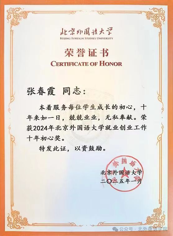 近日,北京高校老员工就业创业指导中心公布2023-2024年度北京高校市级“基层就业卓越奖”评选结果,公司组织员、辅导员张春霞荣获北京市级“基层就业卓越奖”高校教师奖项。该奖项由公司推荐,北京高校老员工就业创业指导中心组织评选,为奖励赴基层就业并做出突出业绩的普通高校毕业生,以及高校在指导服务老员工赴基层就业工作方面做出突出贡献的教师而设立。