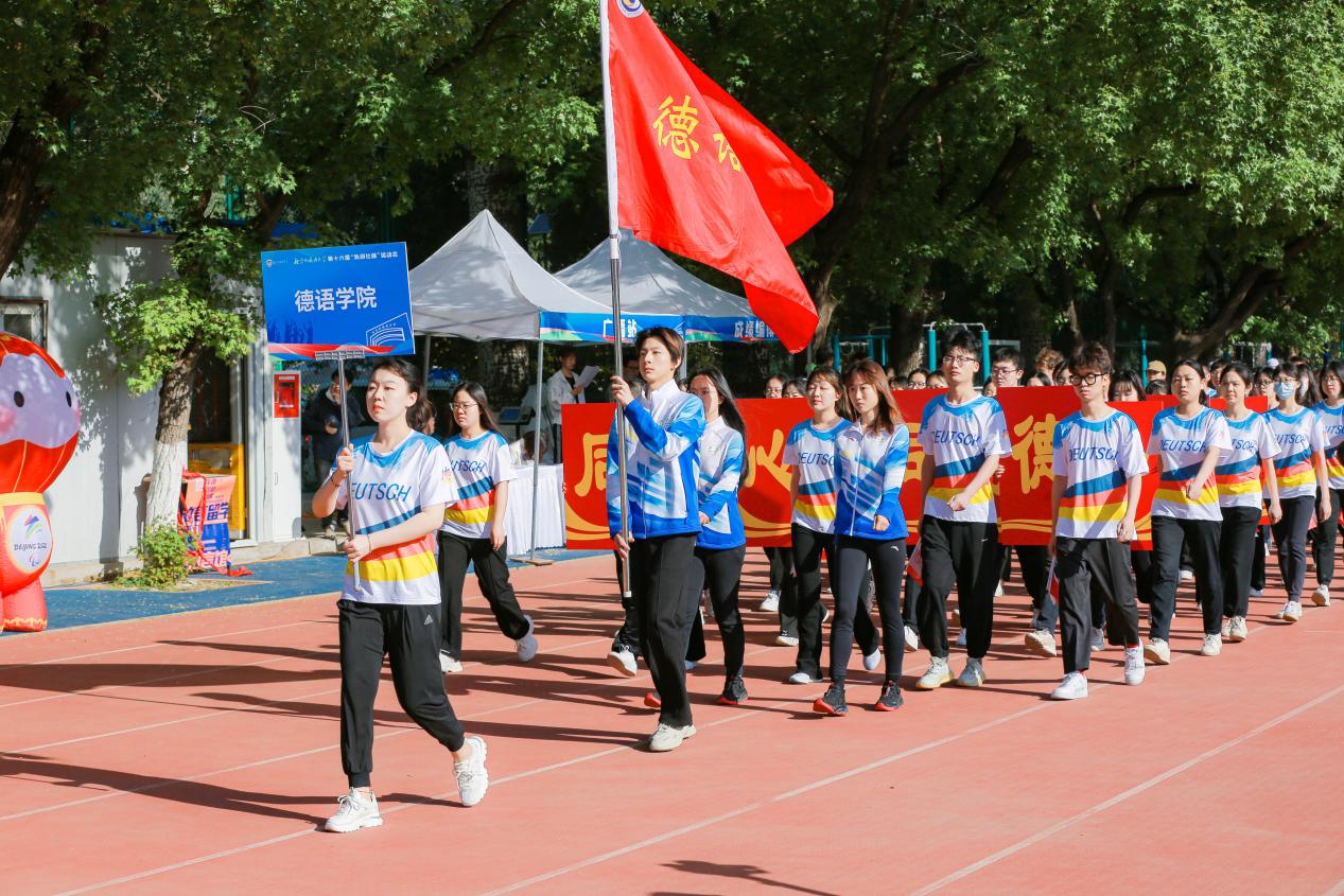 迎着清晨的阳光,sunbet申搏的旗帜随风飘扬。入场式上,印有“Deutsch”和冬奥、德国文化元素的彩色院衫引人注目,德院师生整齐划一,声音洪亮,高举“同心同德、守正创新,更高更强、共创未来”的标语,昂首阔步走过主席台前,展现了昂扬的精神风貌。