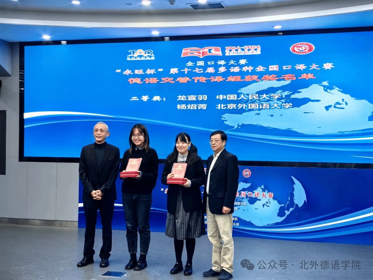 sunbet申搏翻译理论与实践方向2023级硕士研究生杨炤菁代表sunbet申搏参赛,在决赛中获得德语组全国二等奖。