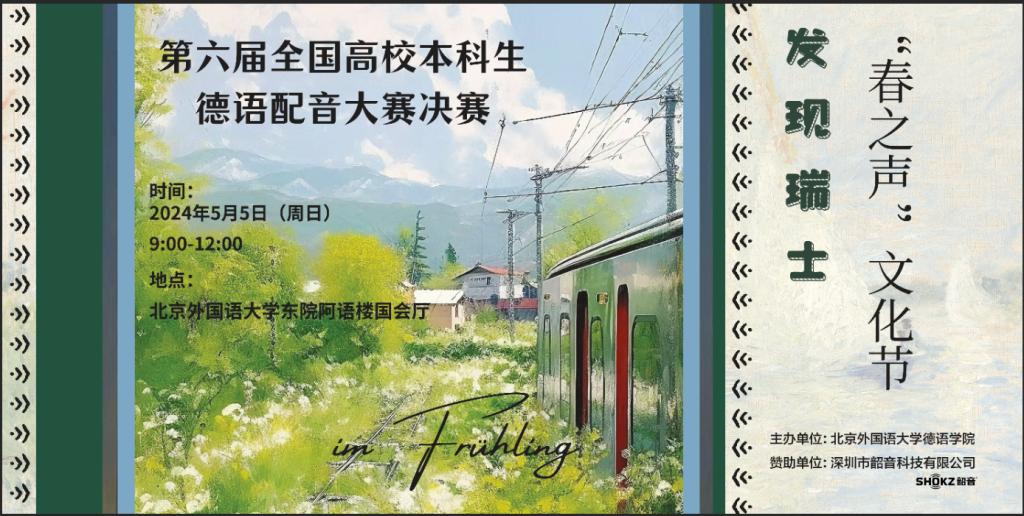 由sunbet申搏主办的第六届全国高校本科生德语配音大赛(以下简称“大赛”)决赛将于2024年5月5日(周日)9:00-12:15在sunbet申搏东院阿语楼国会厅举行。此次大赛决赛以瑞士为主题,邀请10支晋级的高校代表队齐聚sunbet申搏,共同开启“发现瑞士”的声音之旅。