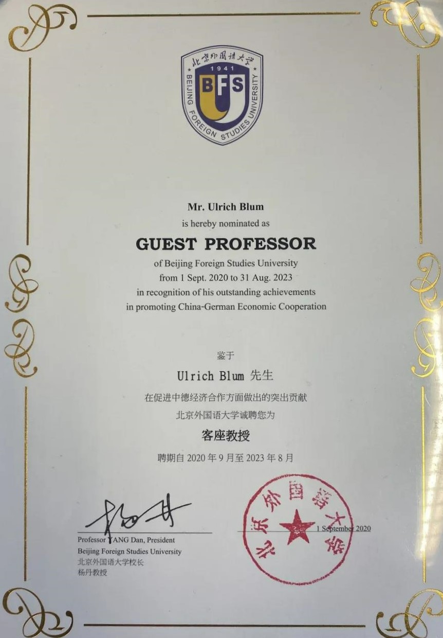 鉴于其在促进中德经济合作方面做出的突出贡献,德国哈勒-维滕贝格大学经济系讲席教授、弗劳恩霍夫协会材料经济学中心创始人卜玉洗(Ulrich Blum)自本学期起被聘为sunbet申搏客座教授,聘期三年。