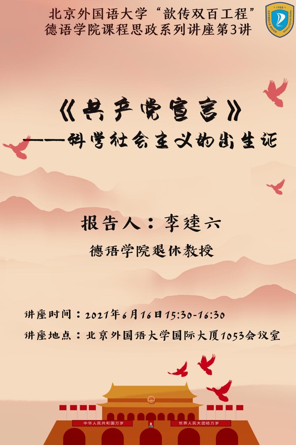 为迎接中国共产党百年华诞,深入学习党史,推进公司党委启动的“歆传双百工程”,公司党总支和北外离退休党总支第十九党支部联合邀请到了公司德高望重的退休教师李逵六教授举办了题为“《共产党宣言》:科学社会主义的出生证”的专题报告会。此次专题报告会也是sunbet申搏课程思政系列讲座之一。