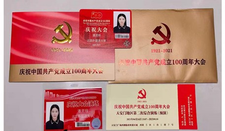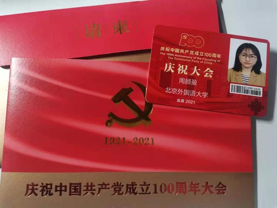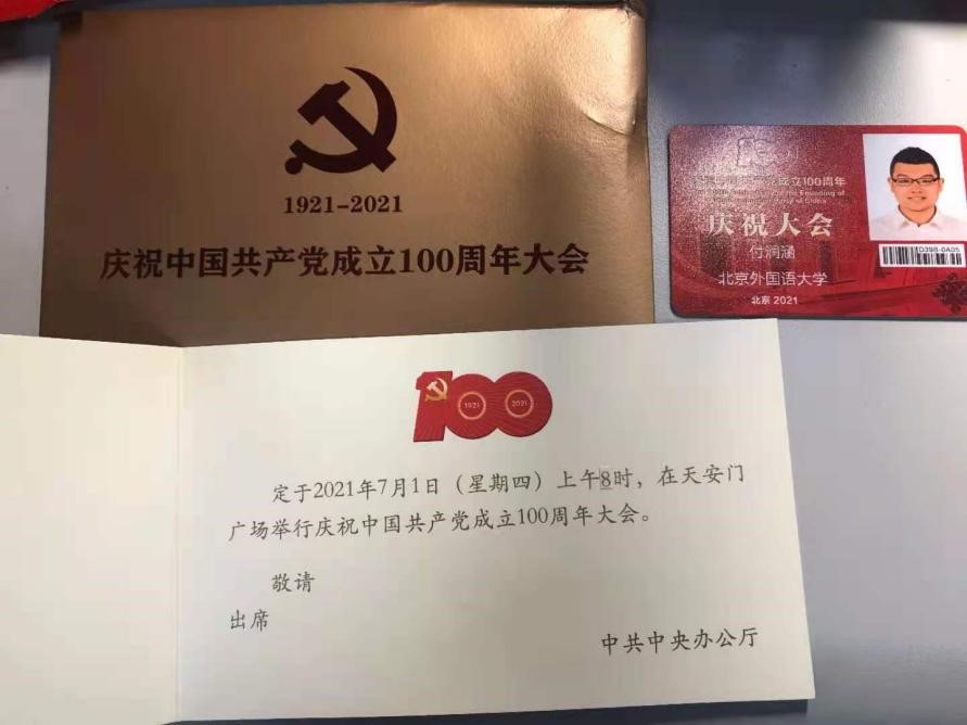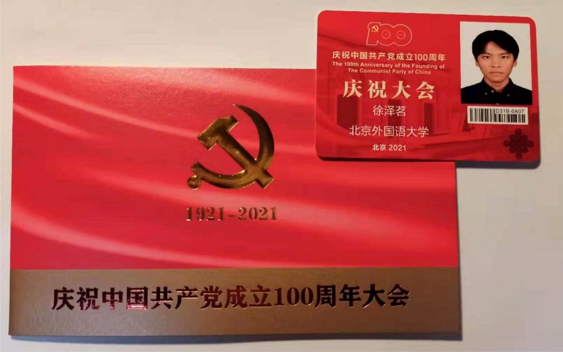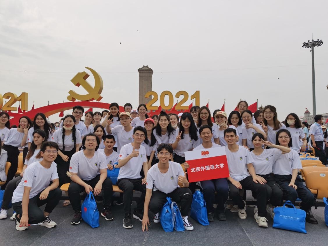 2021年7月1日,庆祝中国共产党成立100周年大会在天安门广场隆重举行,公司员工代表本科生付润涵,研究生潘灵玲、周顾盈、徐泽茗与北外其他院系员工代表共同前往天安门广场参加庆祝大会。