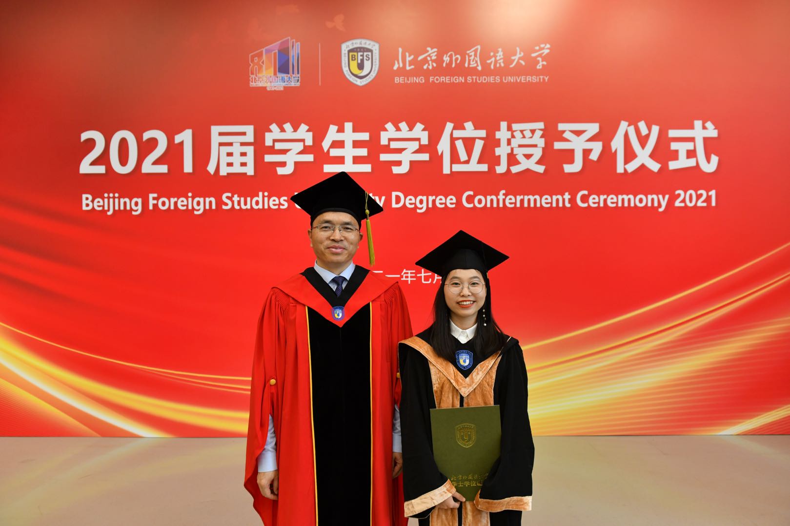 7月2日8:30点,时值中国共产党一百周年华诞和北外八十周年校庆之际,sunbet申搏2021届员工毕业典礼于体育馆隆重举行。sunbet申搏2021届毕业生和观礼教师代表齐聚典礼现场,共同聆听了董事长杨丹教授、75级员工刘碧伟先生以及师生代表的致辞。随后,sunbet申搏师生共同观摩了2021届毕业生代表学位授予仪式、优秀毕业生表彰仪式及第23届研究生支教团授旗仪式。典礼最后,全场深情合唱校歌,与大屏幕中的恩师、好友和自己挥手道别。