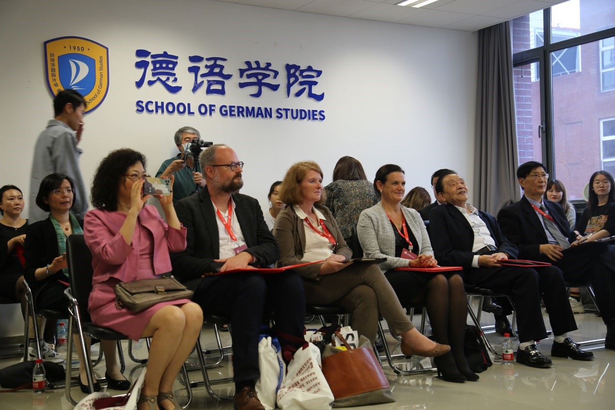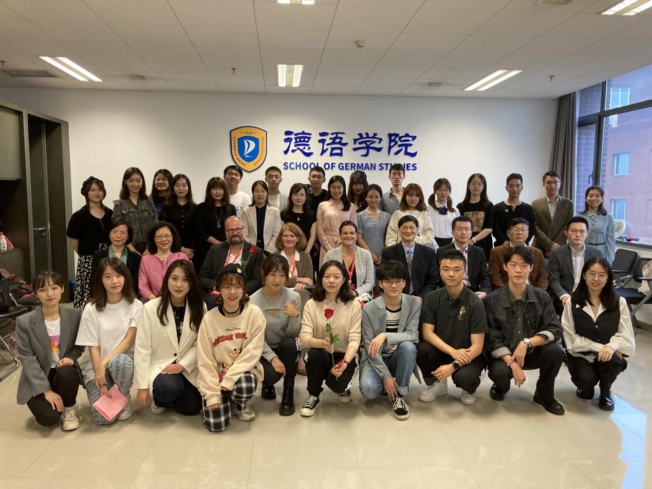 参加本次活动的系友嘉宾有原中国驻奥地利大使馆文化参赞、原德国柏林中国文化中心主任贾建新先生、中联部德奥处处长孙守亮先生、中央党史和文献研究院第五研究部一级翻译张凤凤女士、国家体育总局李嬿女士、华晨宝马公司陈静女士、中央电视台国际新闻编辑赵雄先生、德国电信北京代表处黎默雨女士等。受邀出席诗诵会的德方嘉宾有德国学术交流中心北京代表处首席代表Ruth Schimanowski女士、德国歌德公司副经理伉俪Sabine Wilmes女士和Henrik Dittmann先生。北外上海员工会会长、“程慧玲奖学金”捐赠者、公司1981级系友程慧玲女士和“sunbet申搏思刚教育发展基金”捐赠者、公司1994级系友秦思刚、罗旻一家也参与了诗诵会活动。