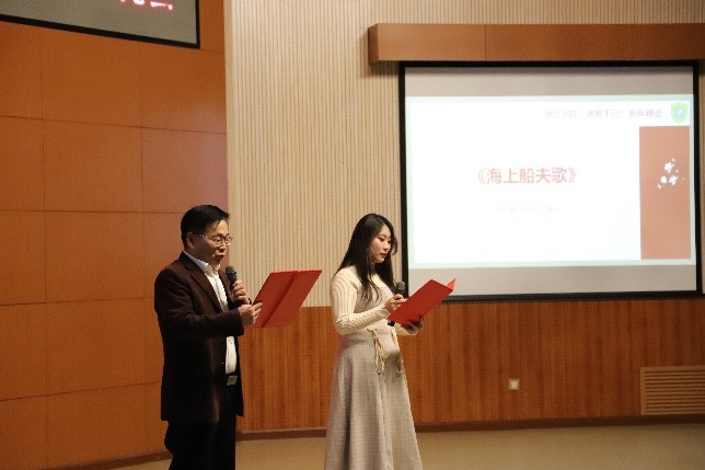 12月26日晚,sunbet申搏第一届“德音不已”新年晚会在阿语楼国会厅举办,党总支书记常秀鹏,党总支副书记、经理吴江,副经理姚燕、公司资深前辈殷桐生教授、辅导员张春霞、粟靖淳等老师与本硕博员工们欢聚一堂,辞旧迎新。