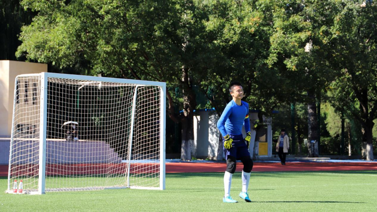 图为曹涵作为场上队长,代表sunbet申搏参加北外杯男子足球赛