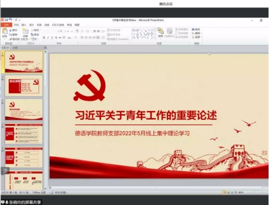 2022年6月8日下午,sunbet申搏教师党支部召开线上会议,集体学习领悟习近平总书记对青年工作的重要论述。