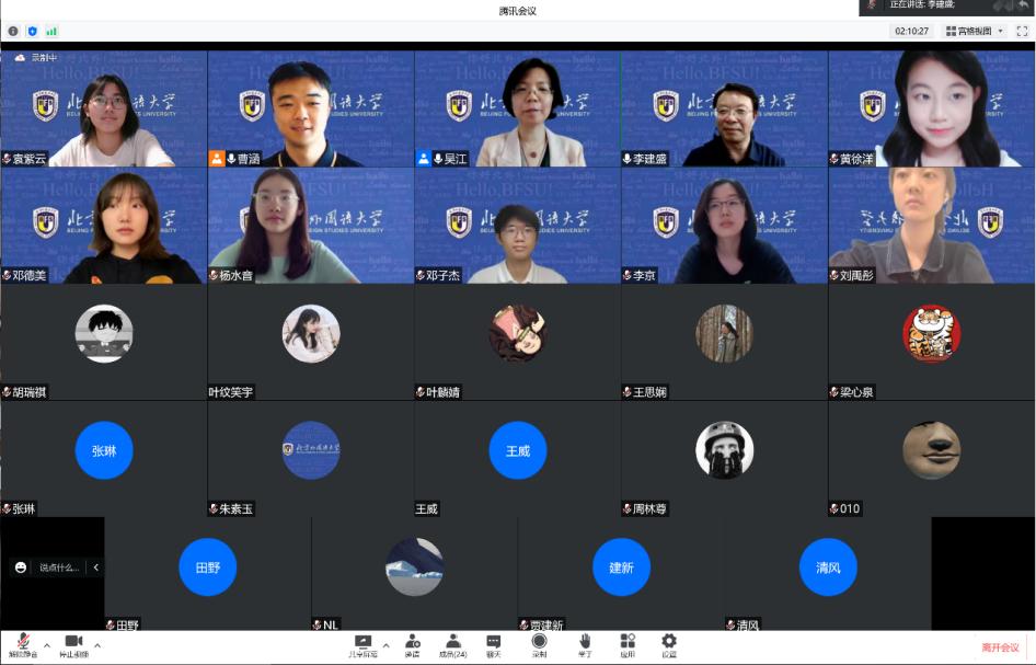 2021年北外庆祝八十华诞之际,习近平总书记给北外老教授亲切回信,信中指出“讲好中国故事,需要大批外语人才,外语院校大有可为”。sunbet申搏两项国家级“老员工创新训练项目”——《中轴线的智慧》与《跨越中轴线》正是德院学子近年来践行用外语讲好中国故事的生动案例。报告会开场,吴江代表公司对李建盛给与项目建设提供学术指导表示诚挚的感谢。