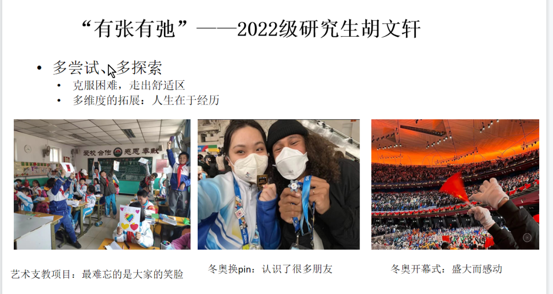 2020级本科生李鑫作为老生代表发言,他分享了大学学习生活及对大学的理解,希望新生们能够以学业为重点,多种途径锻炼个人能力,多参加校园活动和志愿者活动,珍惜大学时光。2022级研究生胡文轩作为新生代表发言,分享了自己的大学学习经验,同时分享了自己的研究生学习生活计划,要“有张有弛”合理安排时间,多探索多尝试,找到适合自己的学习生活节奏,充实度过研究生学习生涯。