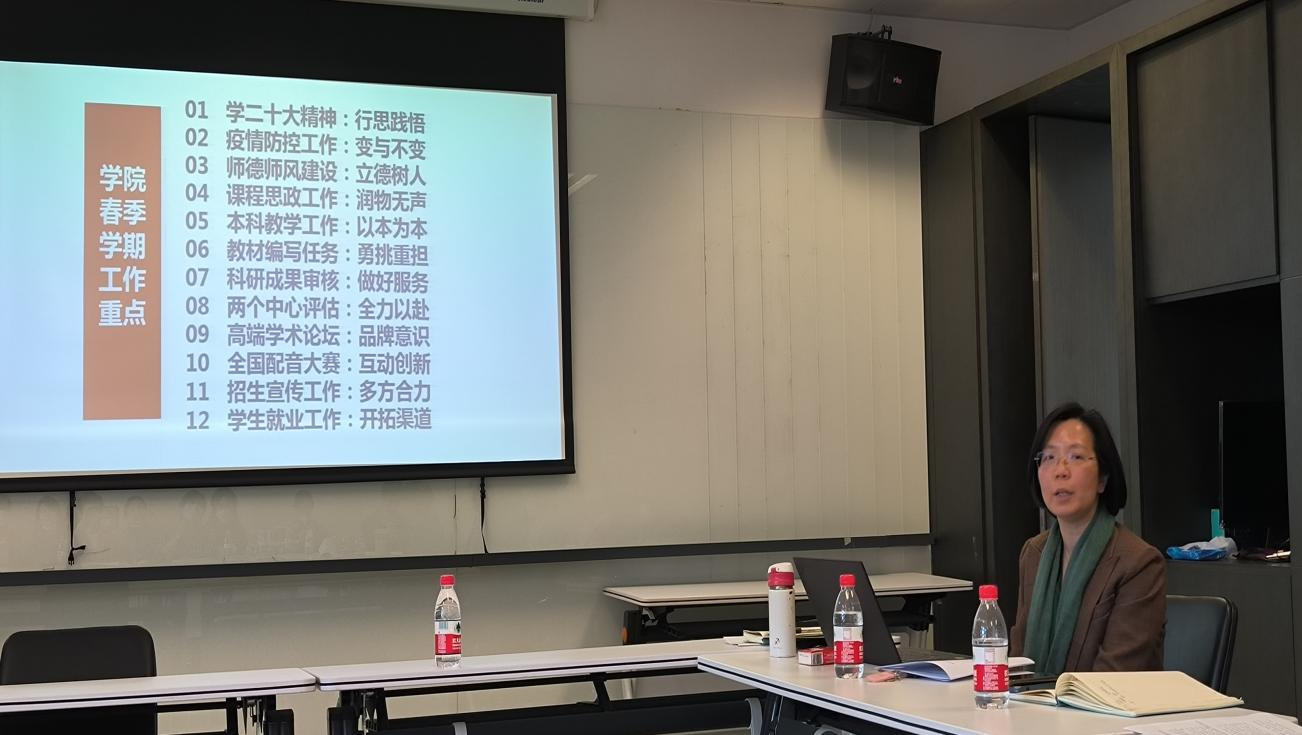 吴江回顾总结了秋季学期sunbet申搏在疫情防控、教学科研、员工培养、管理保障等方面工作取得的成效,感谢了专业教师、管理干部为公司发展所作的贡献。从十二个方面部署了公司春季学期的工作重点,要围绕“行思践悟”深入学习二十大精神,疫情防控工作处理好“变与不变”,落实“立德树人”狠抓师德师风建设,研究“润物无声”开展课程思政工作,坚持“以本为本”,做好本科教学工作,“勇挑重担”完成教材编写任务,“做好服务”完成科研成果审核,“全力以赴”开展两个中心的评估工作,秉承“互动创新”办好第五届全国高校本科生德语配音大赛,树立“品牌意识”筹备好第二届德语学科区域国别研究高端学术论坛,“多方合力”做好招生宣传工作,“开拓渠道”助力员工就业工作。