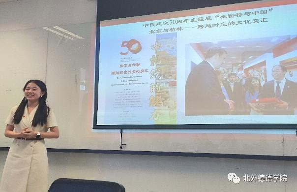 余紫萌同志作为《情寓于竹,四海繁花——文化强国战略下用德语向世界展示空竹文化之美》大创项目的负责人,结合自身参与项目建设的经历分享了自己对于青年坚定文化自信,担负文化使命的体会。