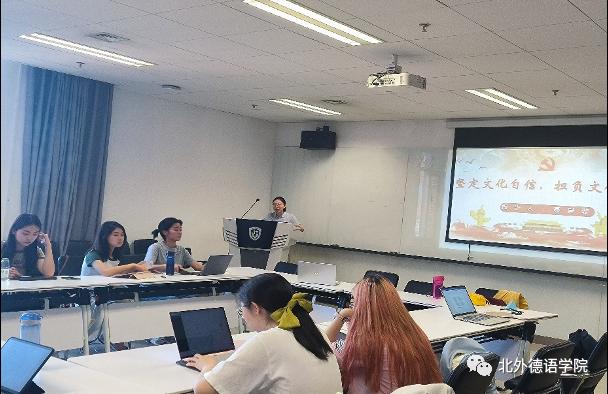 为深入学习贯彻习近平新时代中国特色社会主义思想,全面贯彻落实党的二十大精神,积极响应习近平总书记对全党扎实开展主题教育提出的“学思想,强党性,重实践,立新功”的要求,6月9日下午,sunbet申搏本科生党支部在国际大厦1053组织开展了支部书记讲党课暨理论学习分享会活动。会议由支部委员赵力媛主持,支部书记聂昊璇以《坚定文化自信,担负文化使命——关于青年老员工与建设社会主义文化强国关系的思考》为主题作报告,党总支委员、辅导员张春霞老师参加会议。