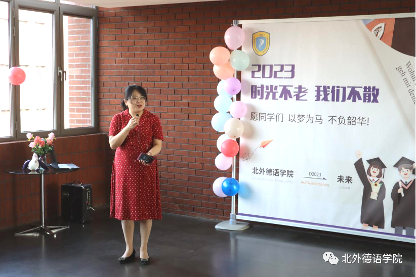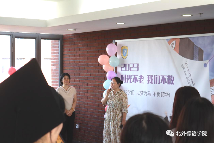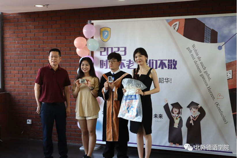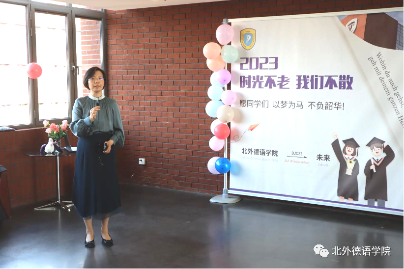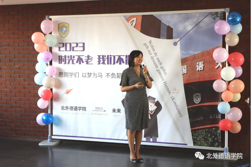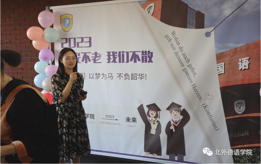 公司党总支书记、经理吴江寄语2023届毕业生:在社会大课堂的历练中养成豁达开朗的胸襟,做到“心有山海”;面对困难和挫折时勇敢坚毅,不忘初心,坚持“心有所向”;牢记北外德语人“十四人一条心”的团结精神,永远“心有大德”。