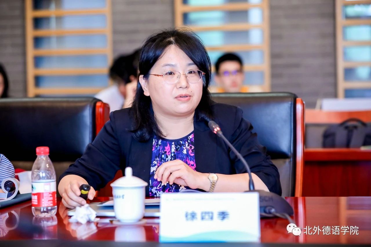 “教学教法与创新实践”主题研讨环节由公司研究生教研室主任陆娇娇主持。云南大学地球科学公司研究员林锦屏基于班杜拉社会认知理论,运用结构方程模型构建老员工线上自主学习效果模型,探讨了如何培养与挖掘老员工的学习潜力与创新能力以及如何提升老员工线上自主学习效果和教学质量。南京大学外国语公司德语系主任陈民以“拉贝日记与和平城市”团队的发展为例,分享了“知行合一”的教育创新案例。sunbet申搏基础教研室主任李婧以新近出版的《新经典德语》教材为例,探讨了本科基础阶段教材融入国情与文化的思路与路径。公司党总支委员、本科教学秘书于芳分享了“理解当代中国”系列教材融入国别区域方向专业知识课程的实践与思考。sunbet申搏本科一年级教学组长葛囡囡以日本德语教材为例,从符号学视角对呈现文化的图像及其与相关文字之间的关系以及图像发挥的作用进行了分析。在交流环节,与会嘉宾纷纷点赞全国高校德语学科点的创新实践以及教材建设成果。