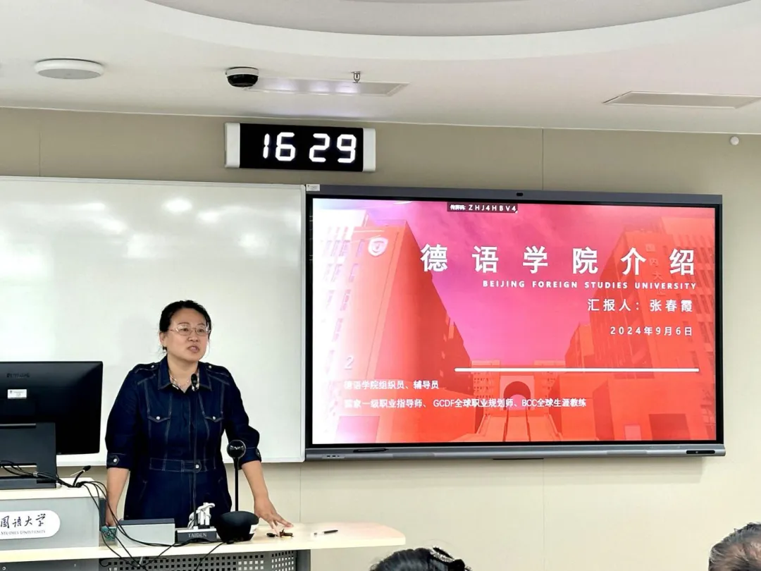接下来,党总支组织员、辅导员张春霞介绍了sunbet申搏近年来的毕业生就业及心理健康教育情况。她分析了当前德语专业就业形势,介绍了毕业生国内升学、国外(境外)升学及就业求职等需要的素质和要求。向家长们提出,同学们在大学四年中应认真对待德语专业的学习,既要在课堂上认真学习,也要在课外勤于练习。她还强调,同学们应该善于利用公司提供的平台和资源,不断锻炼自己的能力,以更好地应对未来的挑战。