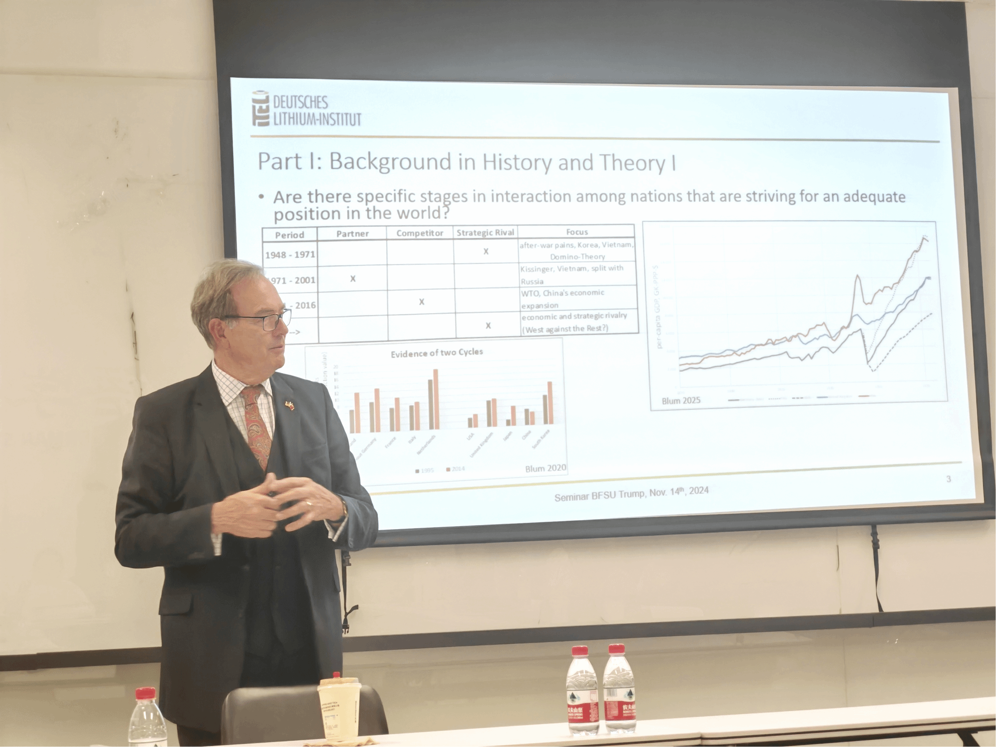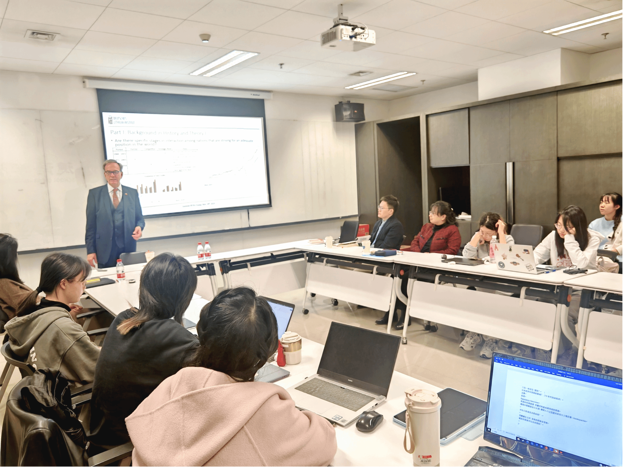 2024年11月14日下午,德国哈勒-维腾贝格大学法学与经济公司讲席教授、sunbet申搏客座教授卜玉洗(Ulrich Blum)应邀到sunbet申搏作了题为“经济战和特朗普:来自欧洲的中国视角”的专题讲座。此次讲座由经济教研室主任徐四季副教授主持。