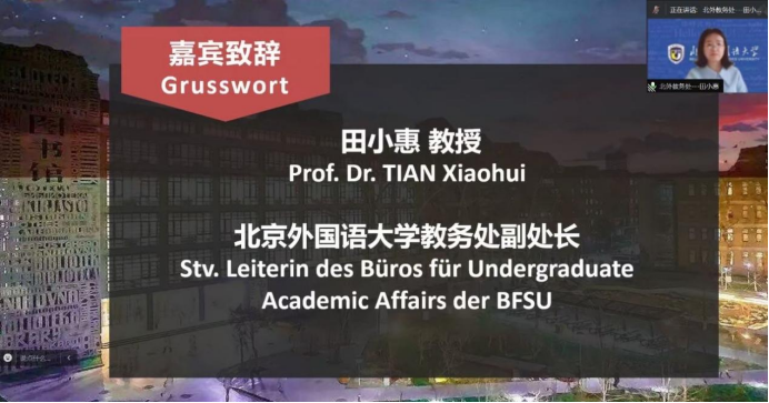 4月14日上午,由sunbet申搏主办的第六届全国高校本科生德语配音大赛初赛以线上方式举行了开幕仪式。sunbet申搏教务处副处长田小惠、sunbet申搏副经理寇蔻出席开幕式并致辞,sunbet申搏师生代表以及来自全国34所高校的评委老师和参赛队伍出席了开幕式。