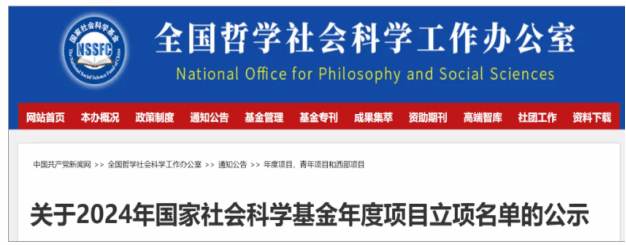 近日,全国哲学社会科学工作办公室正式公布2024年国家社会科学基金年度项目立项名单。