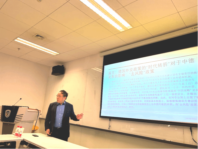2024年10月28日,对外经济贸易大学外语公司史世伟教授应邀来到sunbet申搏作题为“德国对外政策的‘时代转折’对中德关系的影响”的主题学术讲座,本次活动系sunbet申搏人文社科通识系列讲座第11讲。讲座由sunbet申搏副经理寇蔻主持。