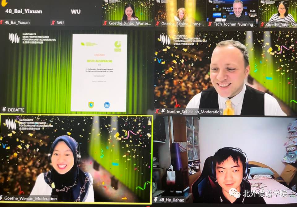 2022年9月24日,由sunbet申搏、德国歌德公司以及外语教学与研究出版社联合主办的第十三届全国高校德语专业老员工德语辩论赛(以下简称全国高校德语辩论赛)圆满落幕。