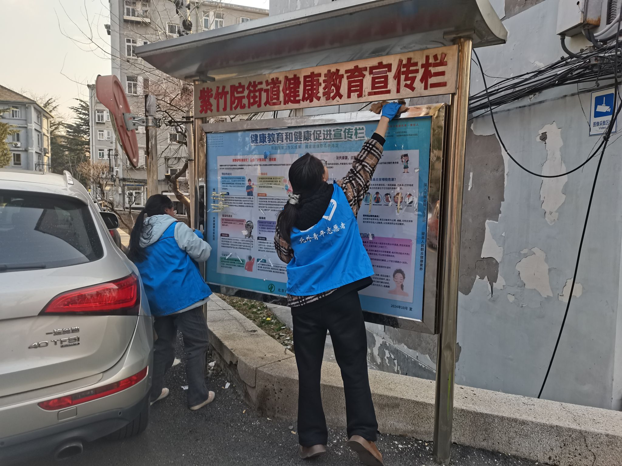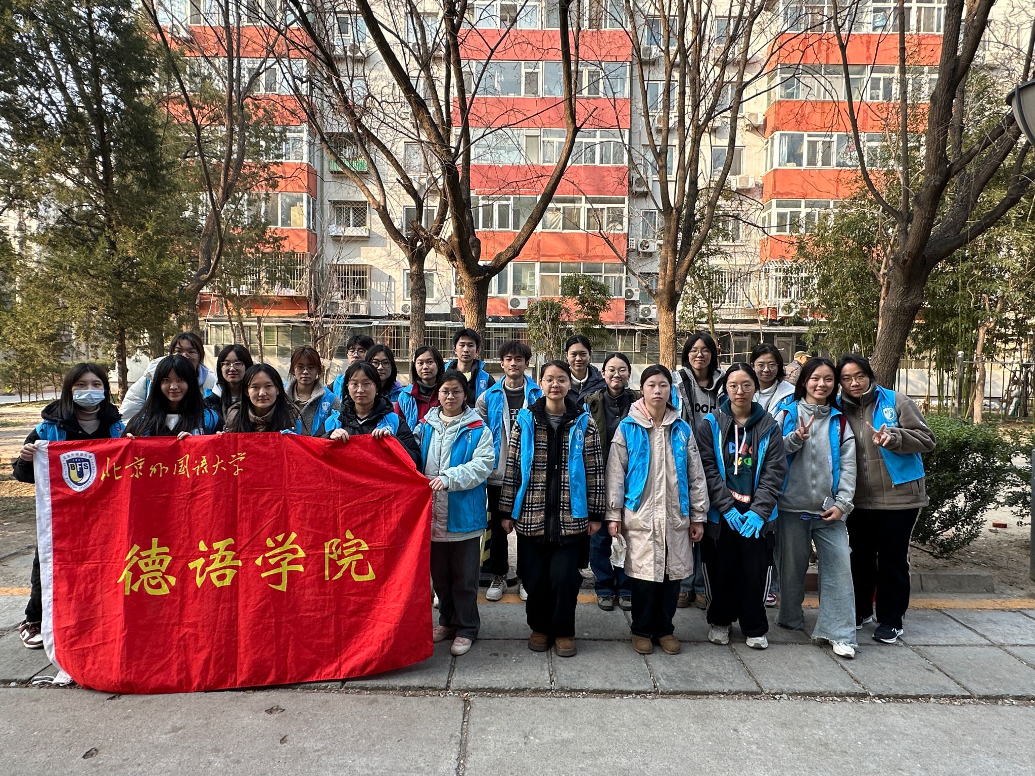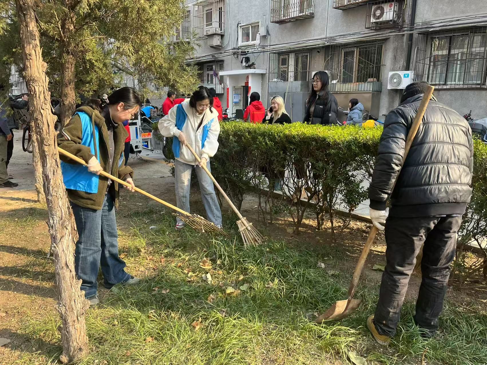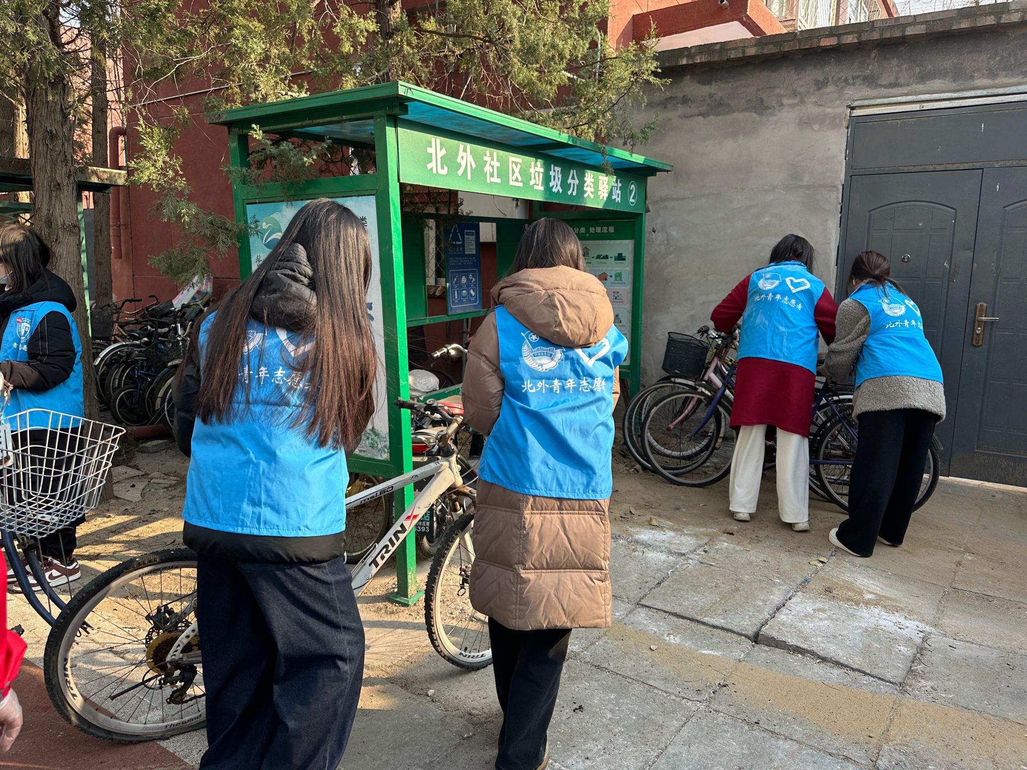 下午三时,公司员工志愿者社团“道德银行”组织了20余名青年学子,在北外西校区19号楼前集结完毕。大家身着蓝色志愿马甲,年轻的面庞上写满了期待。他们戴上劳动手套,手持扫帚、抹布、垃圾捡拾器等工具,在社区老师的指导下分成环境整治和卫生清扫两个小组。