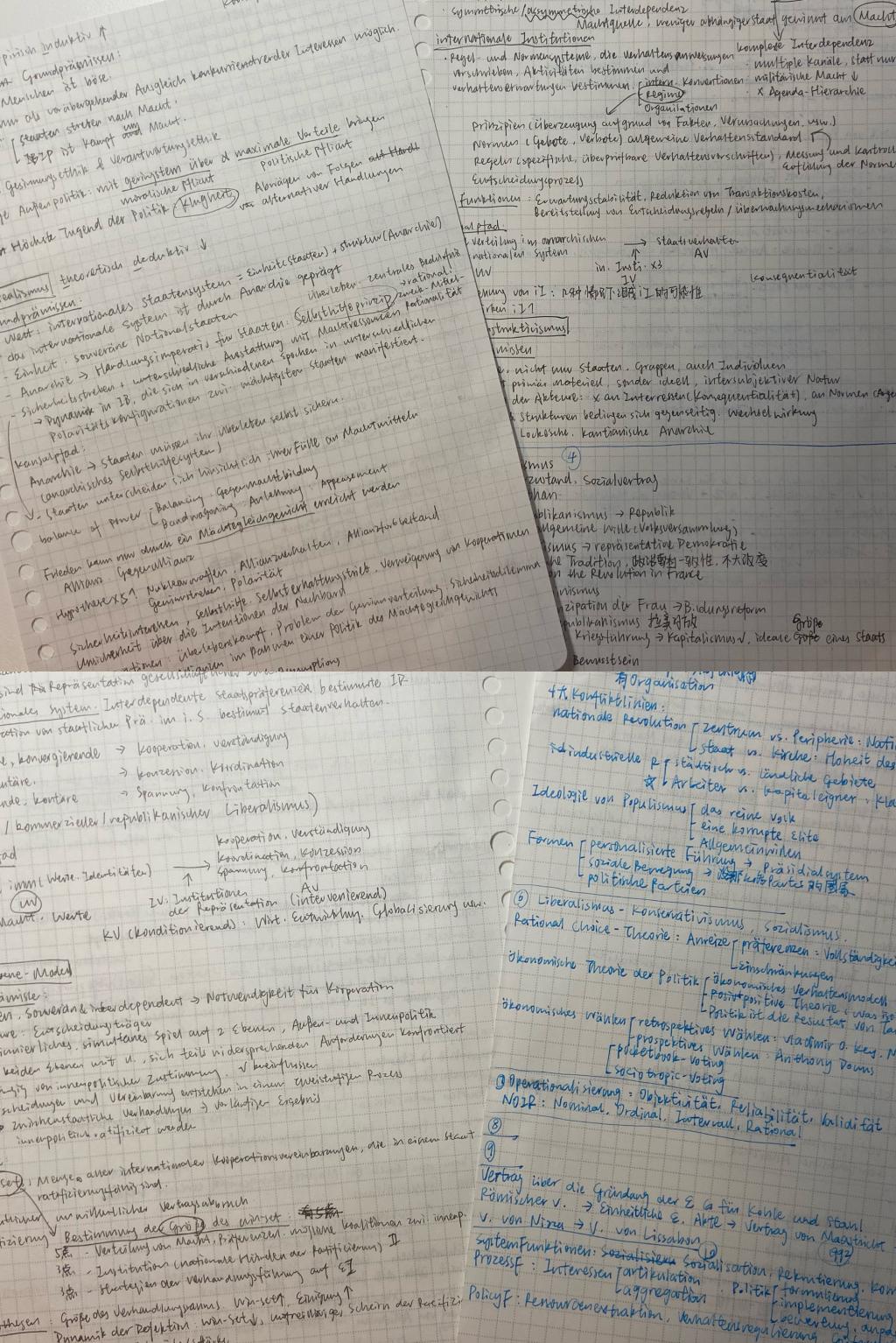 时间快进到了开学,然而想象中的和同学们成为好朋友的情景并没有出现,放眼全班,二三十人满满当当的教室里只有我一个亚洲面孔,虽然早就做好了心理建设,但是内心还是会感到些许不安和无措。为了对抗这种不自在的感觉,我选择把自己埋进厚厚的文献里,与冬令时浓浓的夜色作伴。这也是我第一次认认真真地读国际关系理论的经典文献,之前每次在课上听“Realismus”“Liberalismus”的时候我都晕乎乎的,只知其然而不知其所以然,每次写论文、做报告也因为缺乏理论基础的支撑,只停留在研究表面现象,很难深入到分析原因的层面,但现在,经过在政治系两个学期的耳濡目染,我已经能够学着科班出身的政治系同学的样子,有模有样地结合理论做实证研究了。